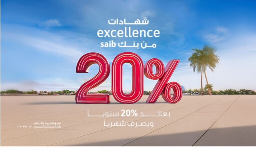 درية عبدالرحمن _أعلن بنك saib عن إصدار شهادة ادخار «excellence» بالجنيه المصري، لمدة 3 سنوات، وبعائد سنوي 20% يصرف شهرياً.