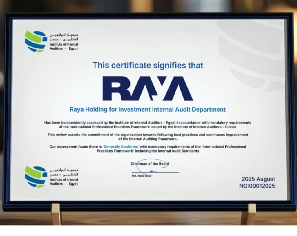 ويمثل هذا الإنجاز محطة مهمة في مسيرة راية نحو تعزيز الثقة المؤسسية، وتطوير آليات المراجعة الداخلية بما يتماشى مع مكانتها كشركة استثمارية رائدة مدرجة في البورصة المصرية وتلتزم بأعلى مستويات الإفصاح والحوكمة.