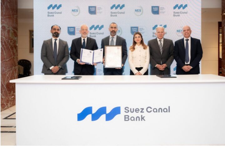 درية عبدالرحمن _ في إطار احتفالية رسمية بمقر بنك قناة السويس تسّلم عاكف المغربي، الرئيس التنفيذي والعضو المُنتدب للبنك، شهادة...