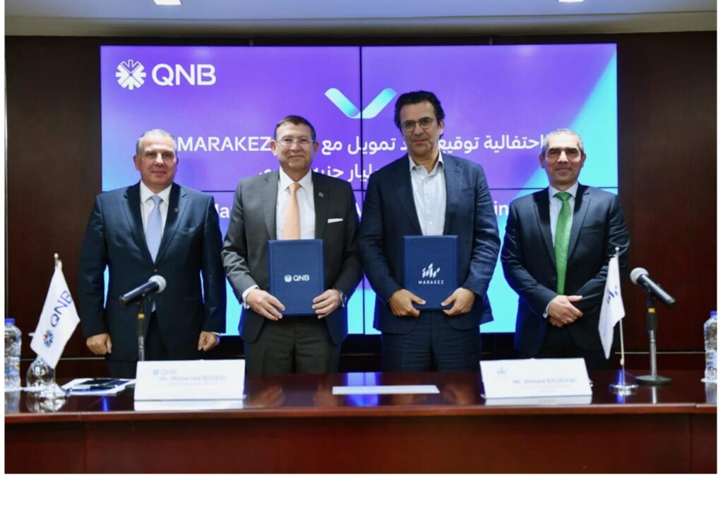وقام بتوقيع عقد التمويل: محمد بدير الرئيس التنفيذي لـ QNB – مصر، وأحمد دمرداش بدراوي نائب رئيس مجلس الإدارة التنفيذي لشركة مراكز،